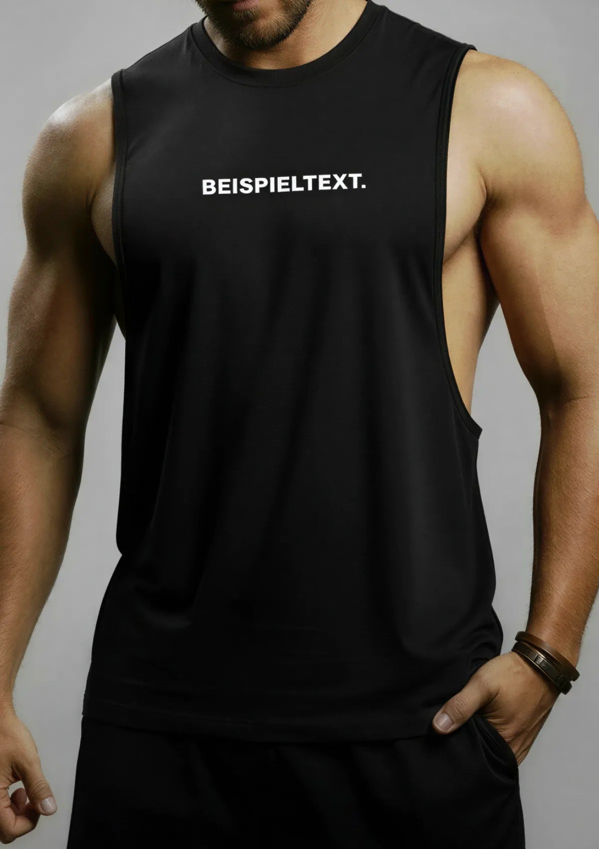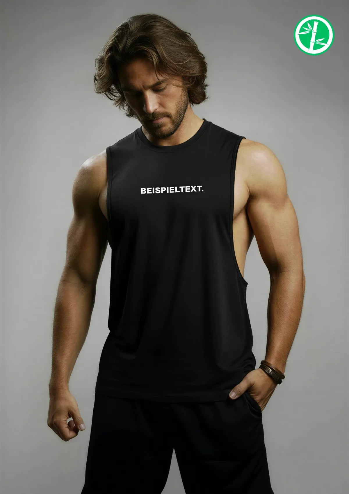 Der richtige Aufdruck war für Dich noch nicht mit dabei? Kein Problem – drucke Deinen eigenen Slogan auf Dein nachhaltiges Bambus-Muscle-Shirt!